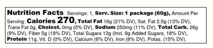 Peanuts, Raw Organic Honey, Organic Quinoa, Pea Protein, Cherries (Tart Cherries, Sugar, Sunflower Oil), Michele's Granola (Gluten Free Oats, Mapel Syrup, Non-GMO Expeller Pressed Canola Oil, Sea Salt), Chicory Root Fiber, Pecans, Askinosie Chocolate (Cocoa Beans, Sugar), Organic Virgin Coconut Oil, Jacobsen Sea Salt, Sunflower Lecithin, Vanilla