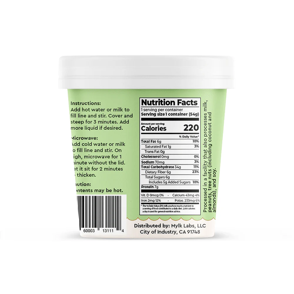 Mylk Labs prides itself on taking a nutrition-first approach when it comes to curating their products. They are focused on providing a high-quality, nutritionally dense product, that also tastes amazing. By using their blend of ground roasted almonds and oats as a base, they were able to recreate protein-packed oatmeal that simply requires water.