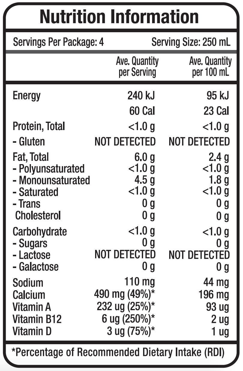 Filtered Water, Macadamia Nuts, Calcium Phosphate, Pea Protein, Natural Flavors, Locust Bean Gum, Sea Salt, Sunflower Lecithin, Gellan Gum, Vitamin A Palmitate, Vitamin D2, Vitamin B12