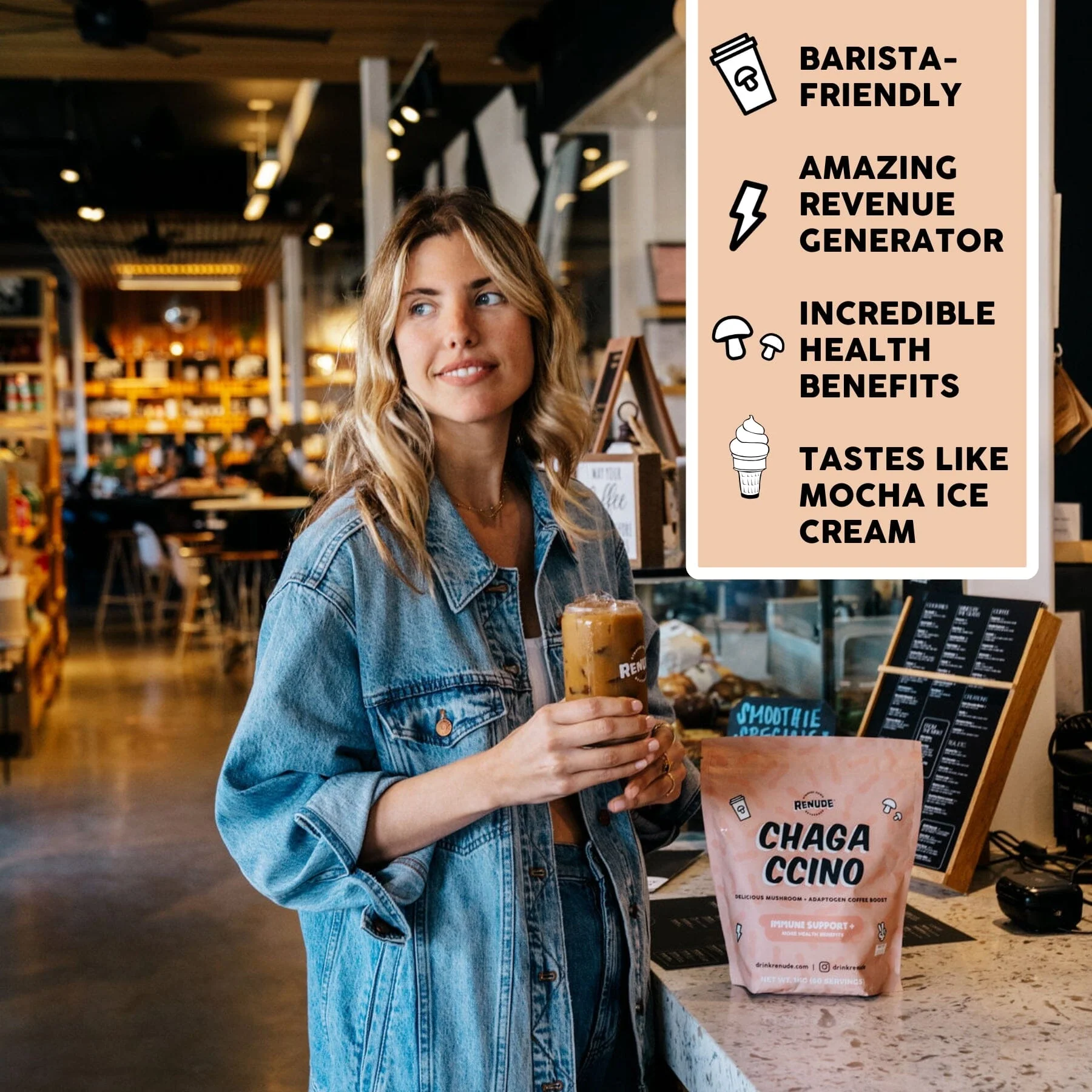 Say hello to the ultimate morning upgrade—your coffee’s new BFF with a twist of magic! The Chagaccino boosts immunity, promotes anti-aging, and provides smooth, jitter-free energy. It’s wildly delicious and checks all the boxes for a functional latte boost!